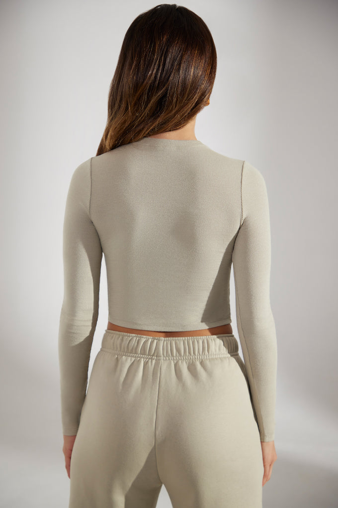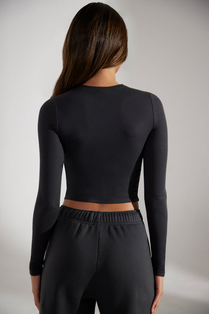 Modal Plunge Long-Sleeve Top in Chocolate Brown