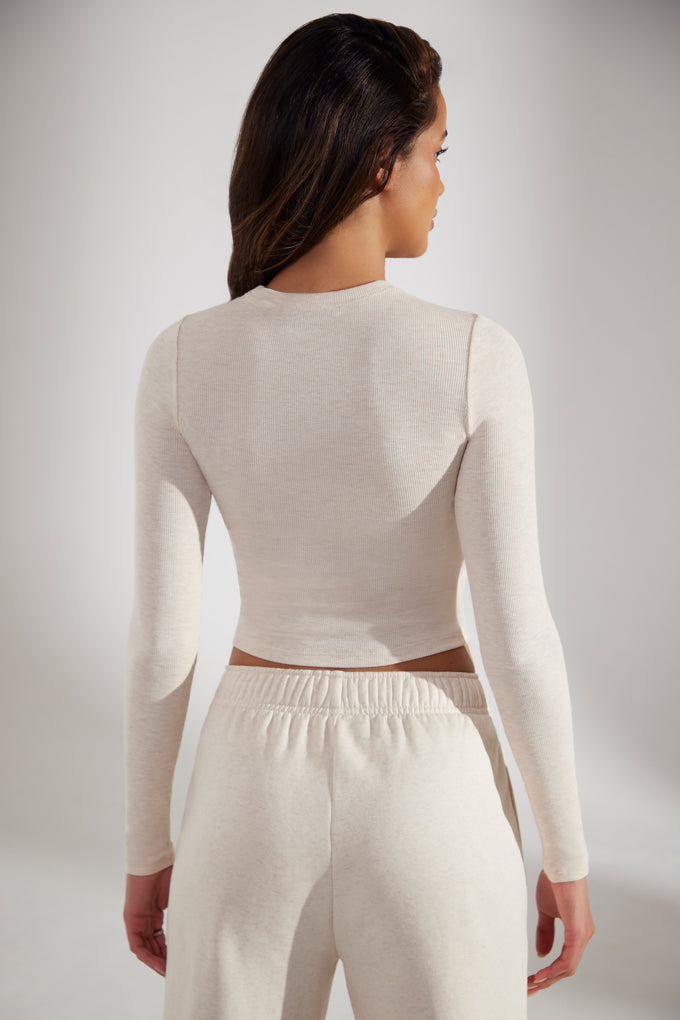 Modal Plunge Long-Sleeve Top in Chocolate Brown Harri