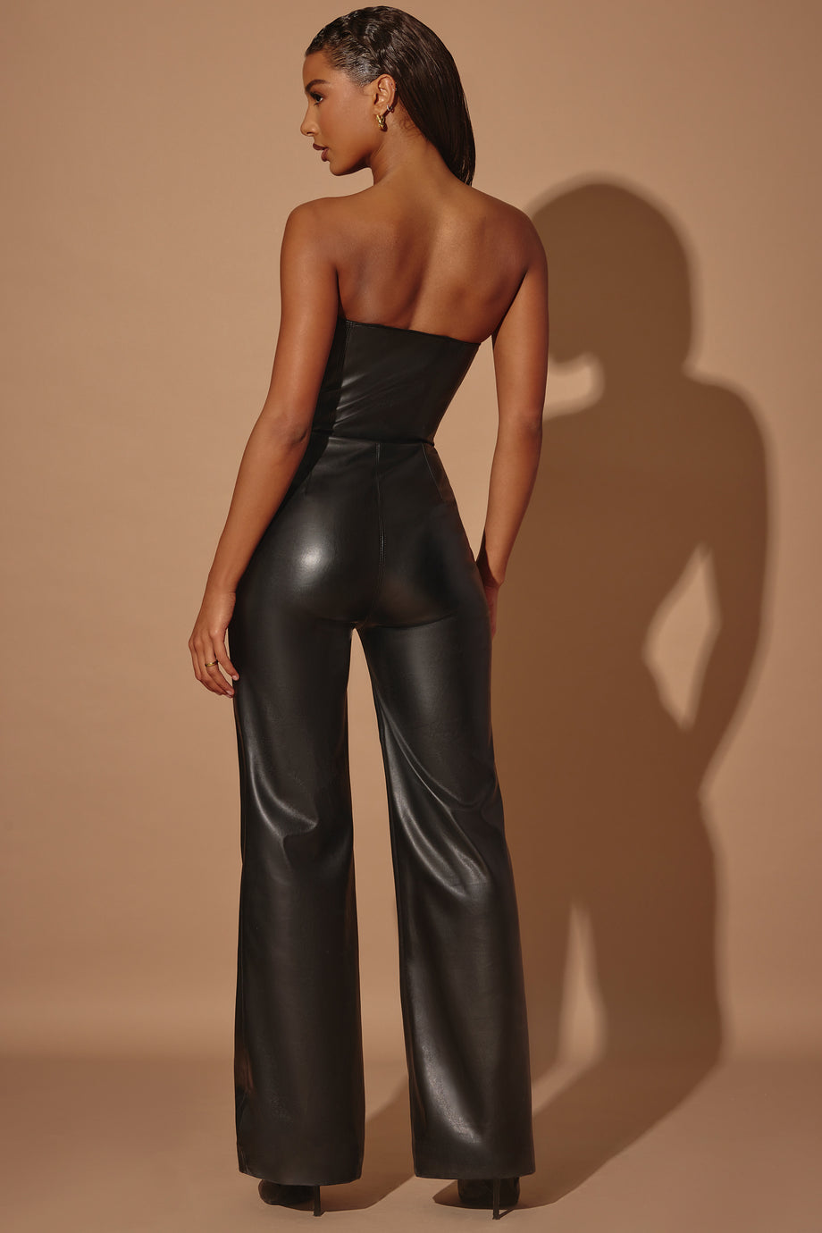 Strapless Flared Hem Jumpsuit in Black Jamila
