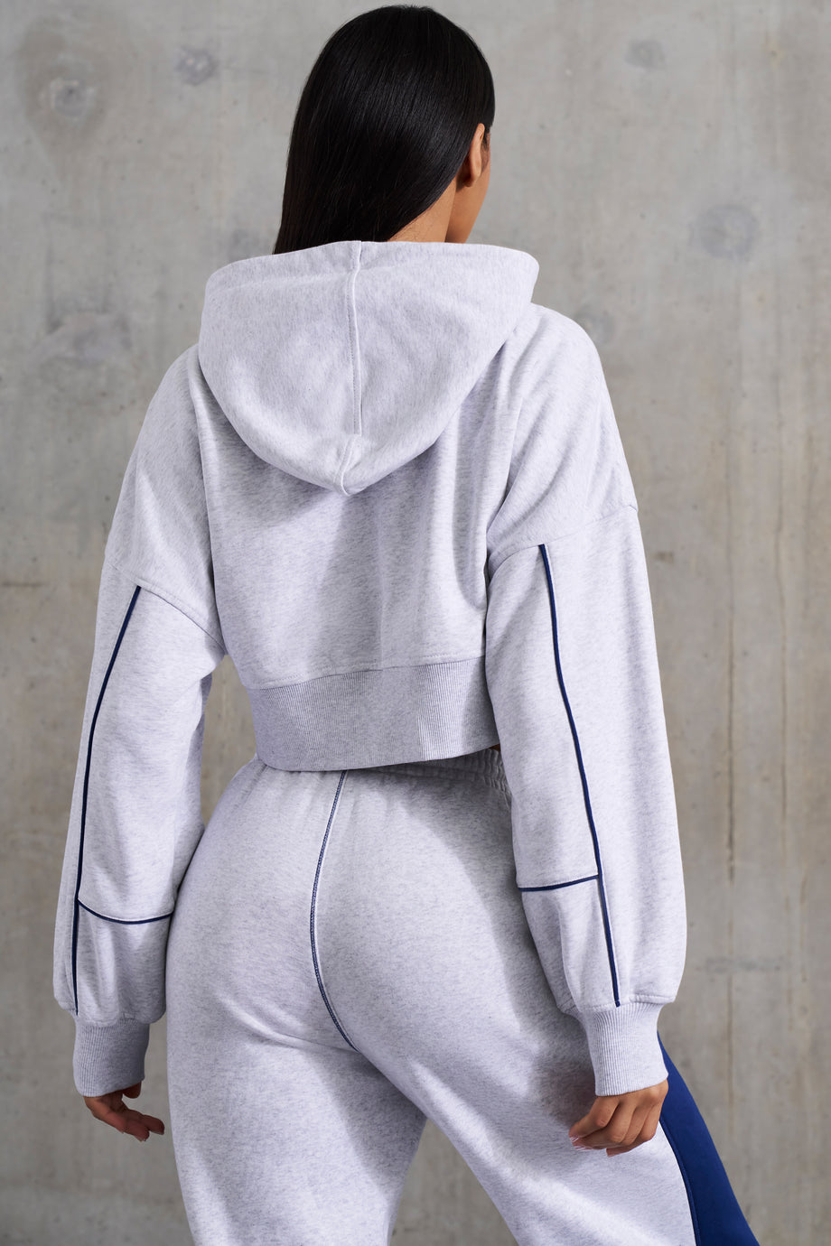 Brushed Jersey Hooded Cropped Shrug in Fog Grey Brushed Jersey Hooded Cropped Shrug in Fog Grey
