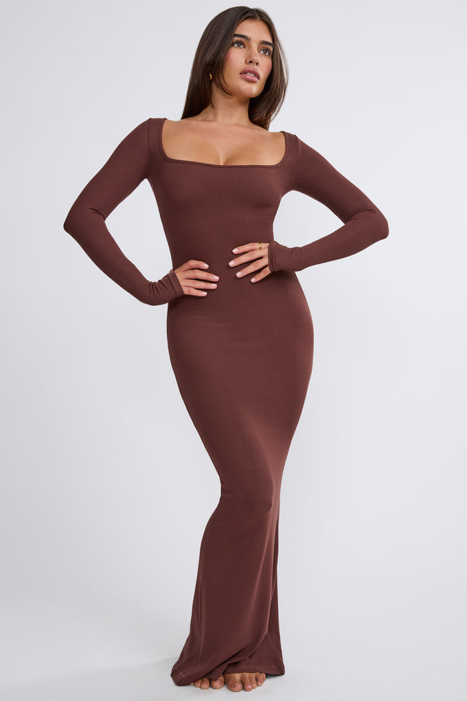 Modal Long-Sleeve Laced Bra Mini Dress in Chocolate Brown