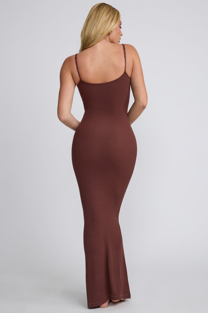 Modal Long-Sleeve Laced Bra Mini Dress in Chocolate Brown Caris
