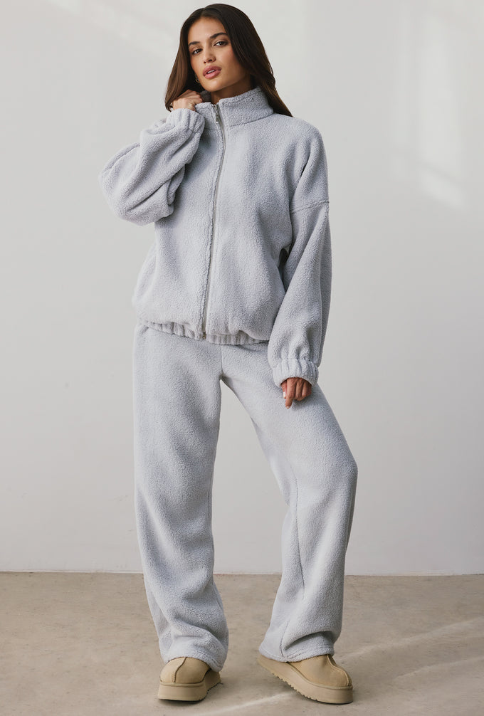 Modal Long-Sleeve Plunge Bodysuit in Grey