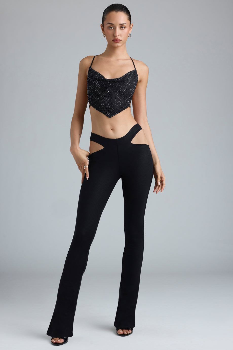 Plunge Hardware-Detail Halterneck Crop Top in White Vella