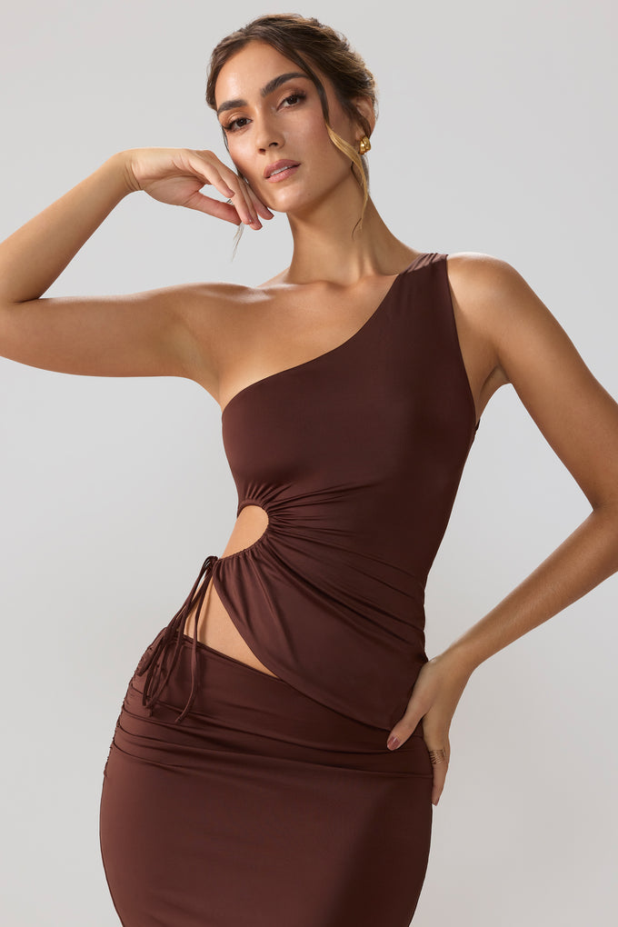 Fringed Bandeau Lace-up Crop Top in Chocolate Brown Bruma