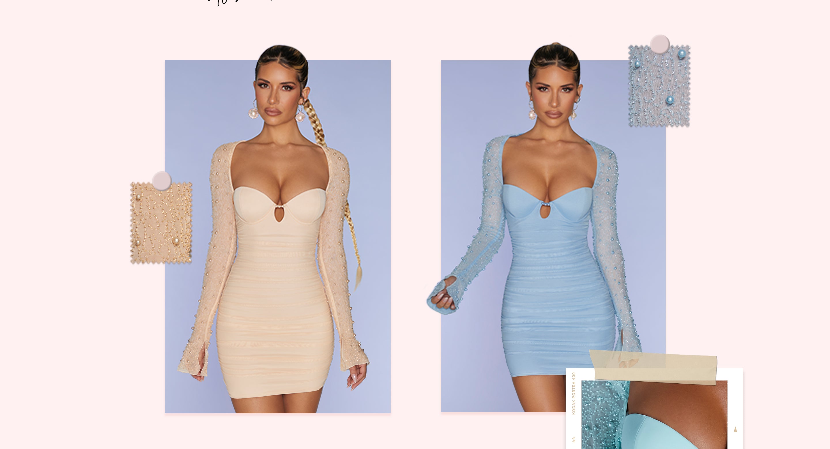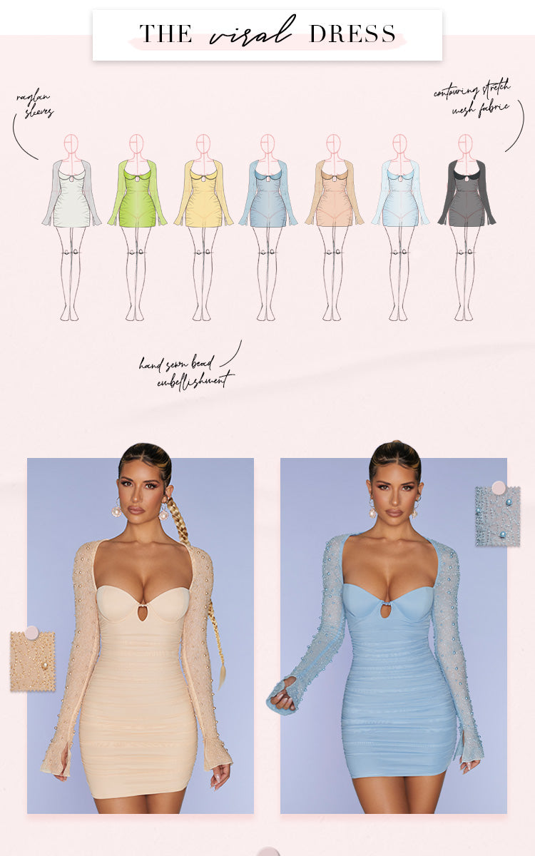 No other dress will compare... The viral dress has long, flared sleeves embellished all-over with pearls and a ruched body. Complete with an underwired bust and tie detailing, this social media favourite is not to be missed. If you were looking for that something "a little bit extra", this is it.