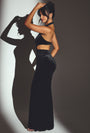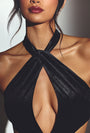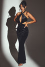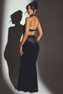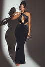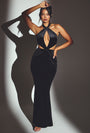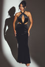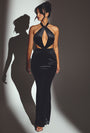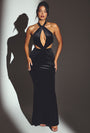 • Velvet Halter Neck Maxi Dress in Jet Black