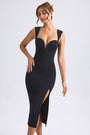 Great quality dress, fit perfectly. Neck line looks so nice on and the dress itself is very elegant. Love the thick material. I'm petite and this is a great height.