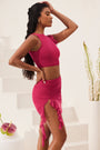 • Oh Polly's Yarelis wearing the Airlie Mini Skirt in Fuchsia Mesh fabric perfect for summer parties