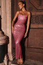 Embellished Bandeau Maxi Dress in Watermelon