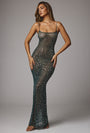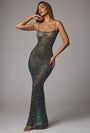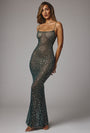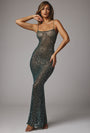 • Sheer Embellished Scoop Neck Evening Gown in Emerald