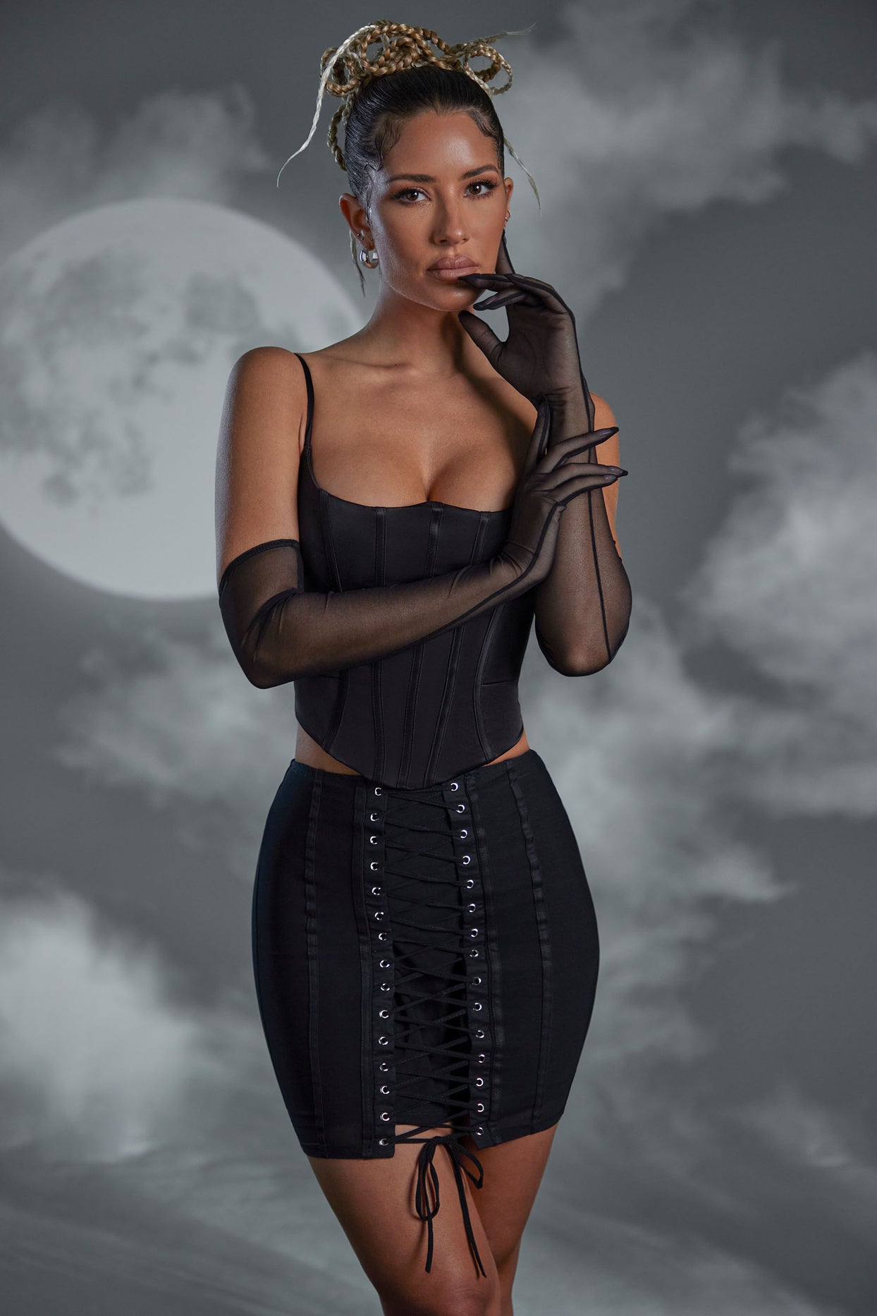 • Lace Up Mini Skirt in Black