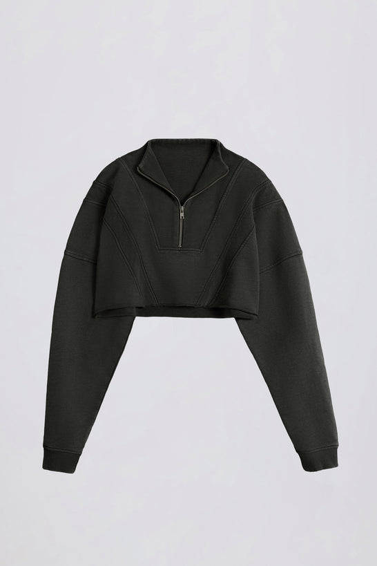 Cotton Jersey Acid Wash Cropped Sweatshirt in Ash
