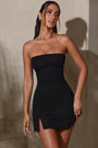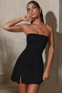 Customers say this dress fits like a glove with soft, thick, stretchy material that hugs curves perfectly. Many appreciate the flattering silhouette and comfortable fit. The dress features a silicone grip strip to prevent slipping. Several customers recommend sizing up for larger busts or choosing the extra length option for taller frames.