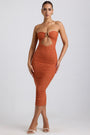 Ruched Hardware Detail Strapless Midaxi Dress in Burnt Orange