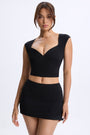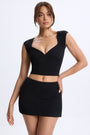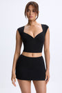 Ruched Cap-Sleeve Top in Black