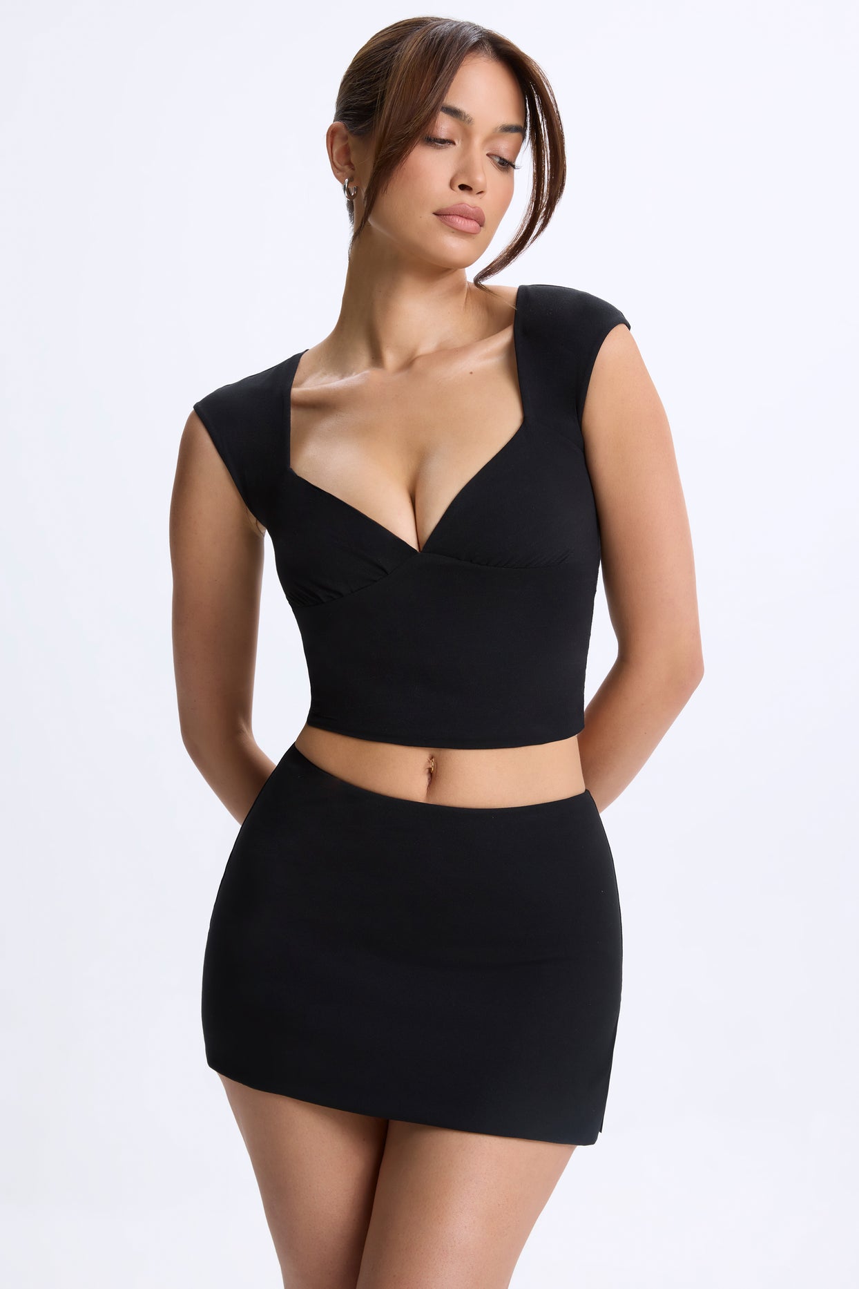 • Ruched Cap-Sleeve Top in Black