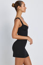 • Modal Sweetheart Neckline A-Line Mini Dress in Black