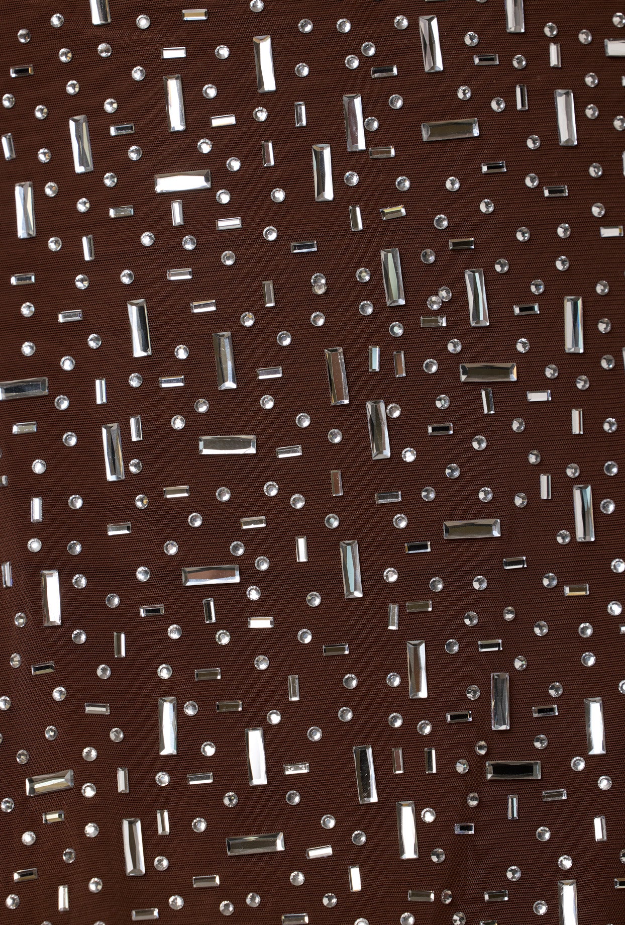• Sheer Embellished Scoop Neck Mini Dress in Deep Cocoa