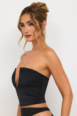 Premium Jersey Strapless Plunge Neck Top in Black