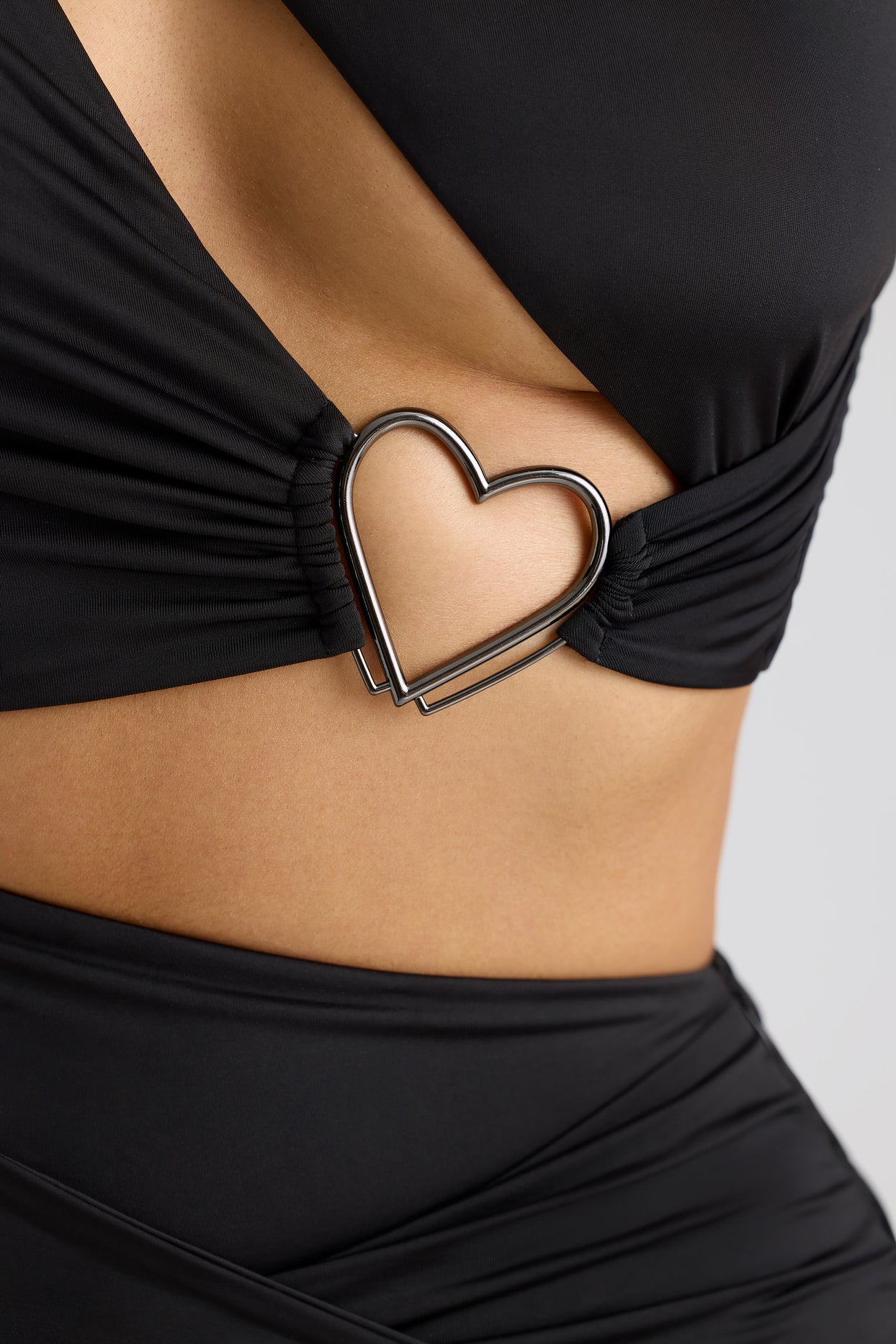 Single Sleeve Cut Out Evening Gown in Black