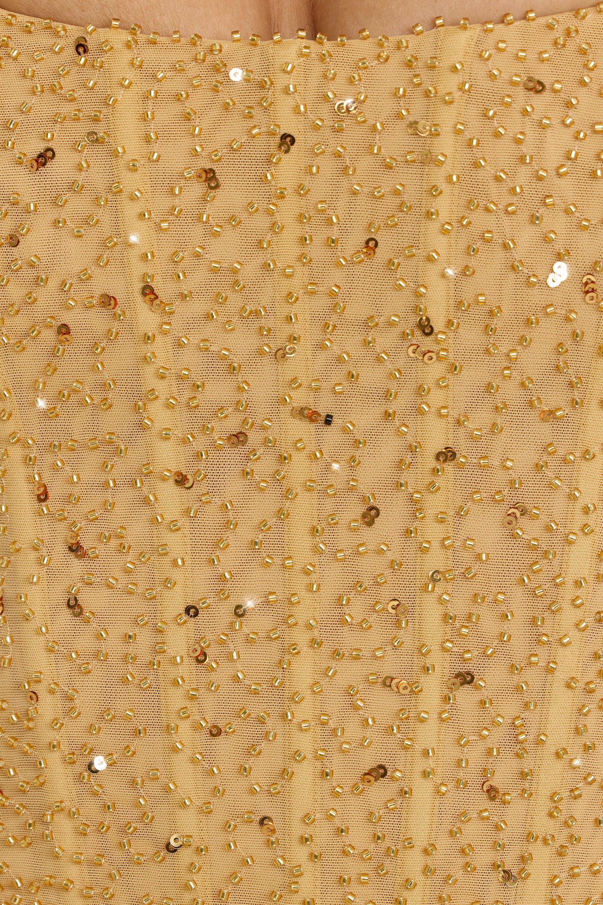 Embellished Corset Tulle Skirt Mini Dress in Gold