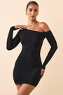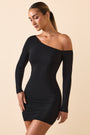 Modal Off-Shoulder Ruched Mini Dress in Black