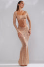• Sheer Embellished Long Sleeve Crop Top in Almond
