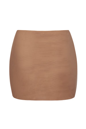 • Soft Mesh Low-Rise Micro Mini Slip Skirt in Honey