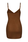• Soft Mesh V-Neck Mini Slip Dress in Chestnut