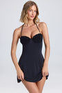 • Halterneck Ruffle-Appliqué A-Line Mini Dress in Black