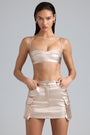 • Metallic Denim Mid-Rise Cargo Mini Skirt in Champagne