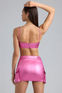 • Metallic Denim Mid-Rise Cargo Mini Skirt in Deep Pink