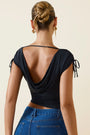 • Asymmetric Ruched Cowl-Back Crop Top in Black