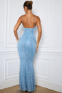 • Embellished Fishtail Maxi Dress in Light Blue