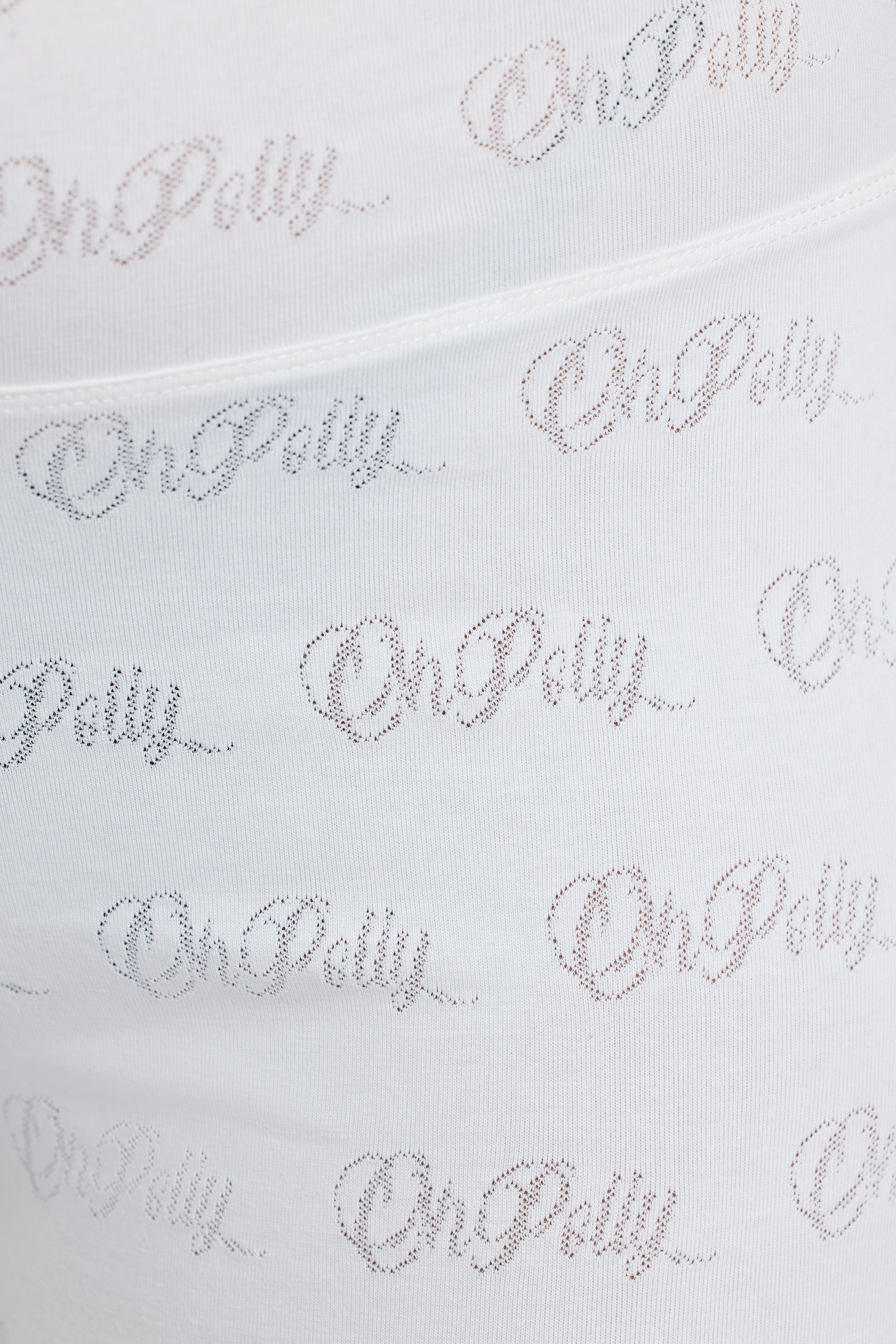 • Mid Rise Straight Leg Pointelle Trousers in White