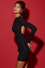Open-Back Bodycon Mini Dress in Black