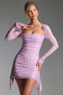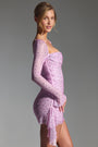 • Oh Polly's Sienna wearing the Marilla Mini Dress in Peony Pink Embellished fabric perfect for cocktail evenings
