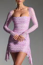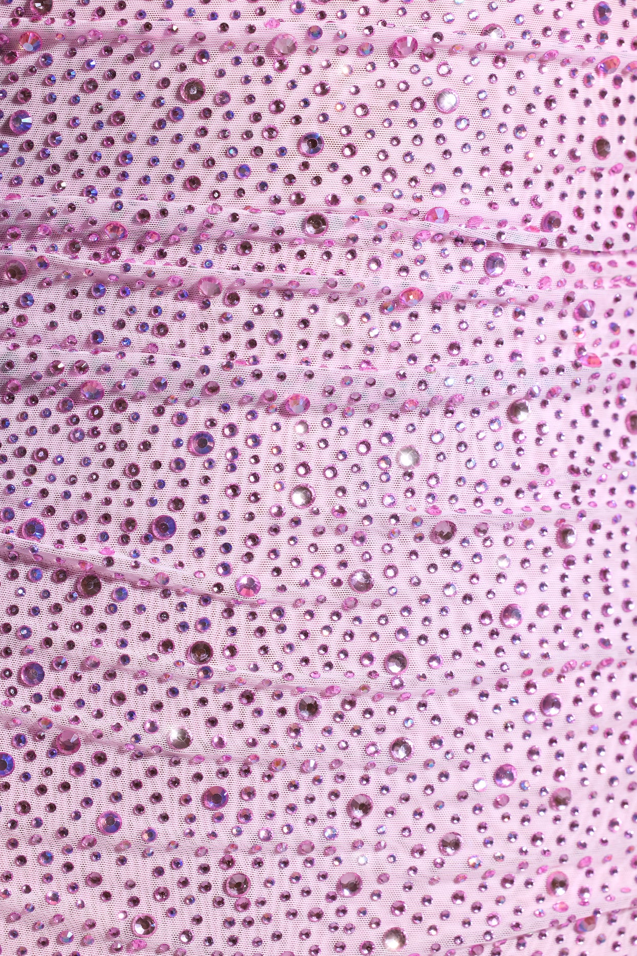 Embellished Draped Cowl-Neck Mini Dress in Peony Pink