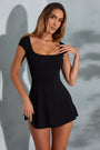 Customers say this dress fits like a glove and features a flattering silhouette. Some note the length runs quite short, especially for taller wearers. The thick, stretchy material draws frequent praise for its comfort and quality, while the open back design adds versatility. Many reviews mention built-in rubber grips that help the dress stay in place. Common feedback includes the dress's adaptability for different occasions, with users styling it both casually and formally. While sleeve fit feels tight for some, most appreciate the overall comfortable fit.