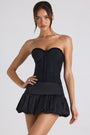• Ruched Lace-Up Strapless Corset Top in Black
