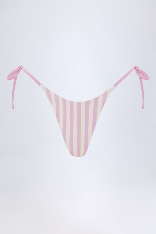 • Side-Tie Thong Bikini Bottoms in Mauve Stripe