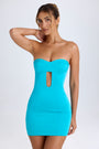 Cut-Out Bandeau Bodycon Mini Dress in Turquoise
