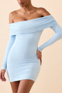 Modal Off-Shoulder Mini Dress in Ice Blue