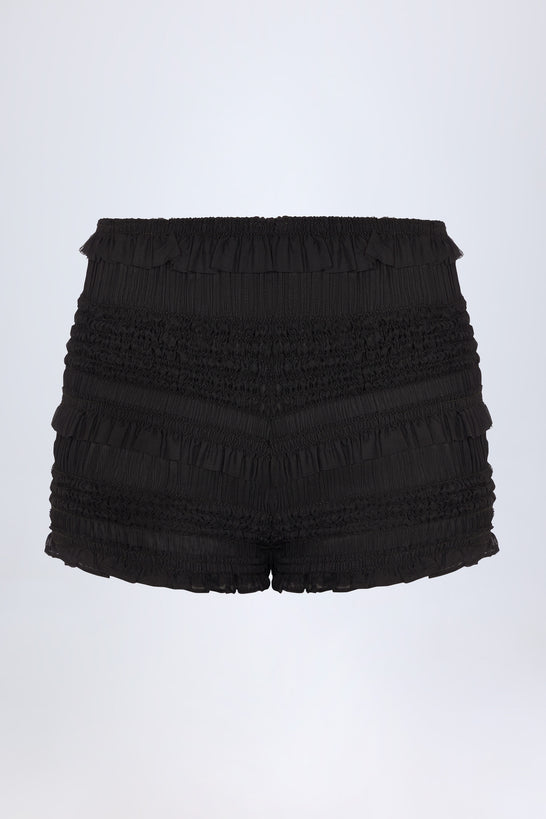Ruffled Mid-Rise Shorts in Black