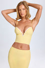 I originally got a US6 based on my measurements but had to return for the next size down. (Also the return/exchange process was v easy and much appreciated) There’s minimal stretch so this top is a little tight buuuut much better fitting than it was before. I love it, the color is so cute, the material is so nice, the top makes my itty bitties look lovely. Very happy with this.
