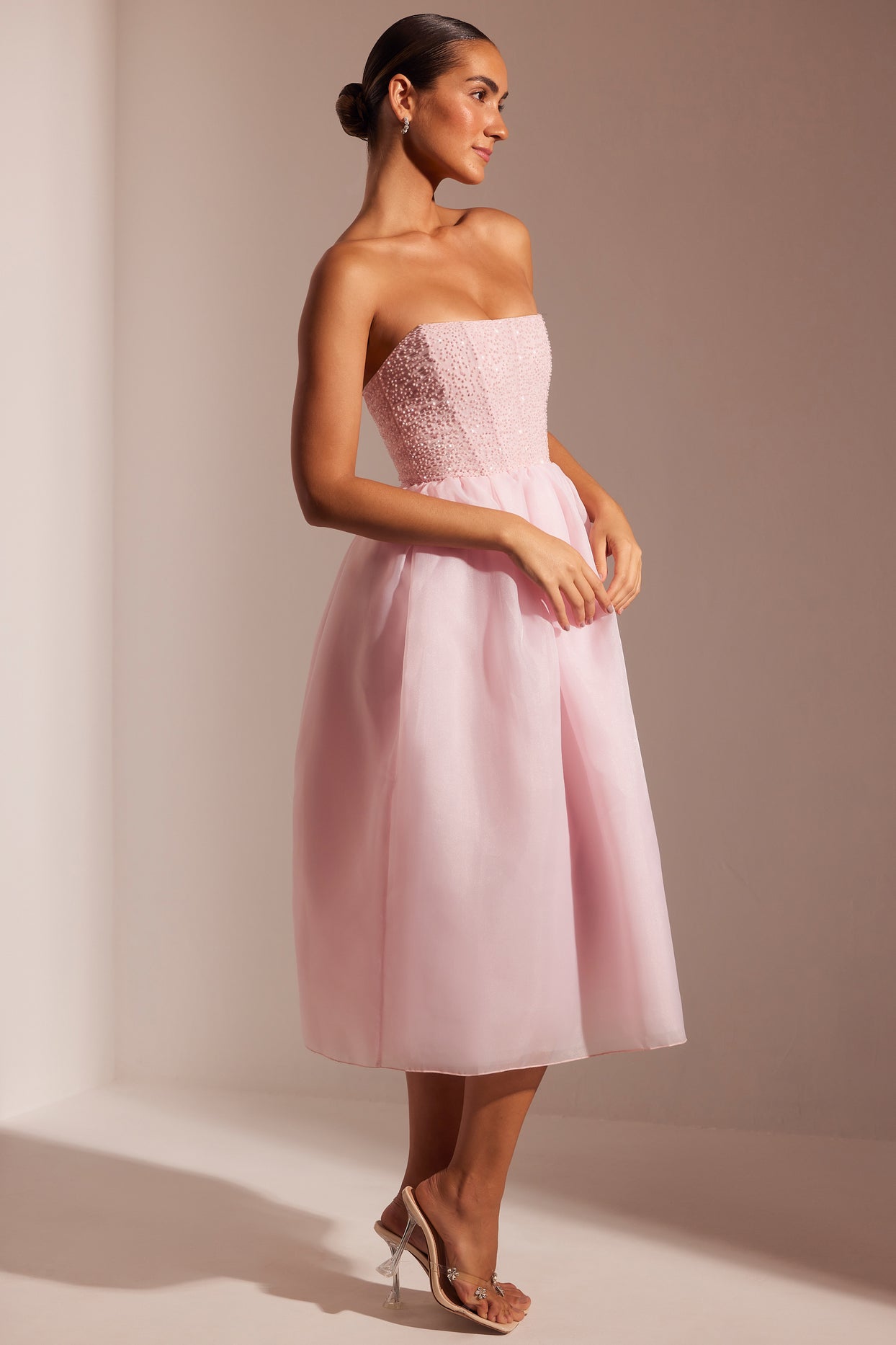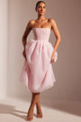 • Embellished Corset Tulle Skirt Midi Dress in Blush