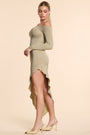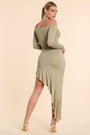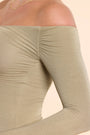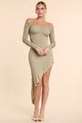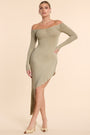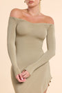 • Long Sleeve Off-The-Shoulder Modal Cashmere Blend Maxi Dress in Taupe