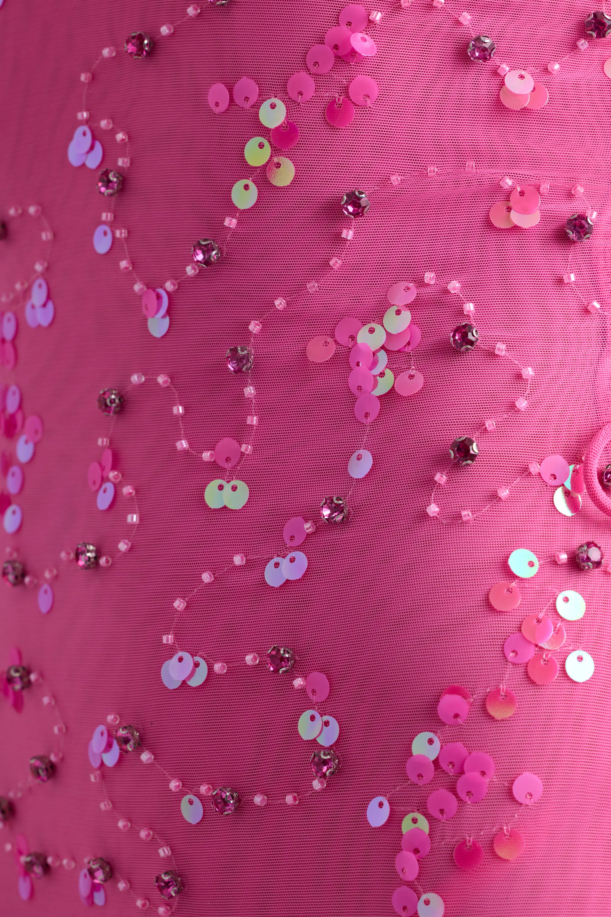 • Embellished Lace-Up Mini Dress in Bubblegum Pink