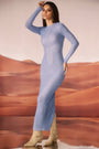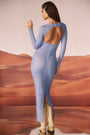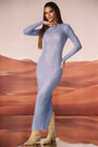 • Oh Polly's Lini wearing the Yasmin Maxi Dress in Blue Rhinestone fabric perfect for a glamorous evening out